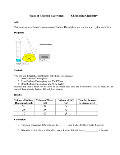 2 to investigate the effect of temperature of sodium thiosulphate in a reaction with hydrochloric acid.